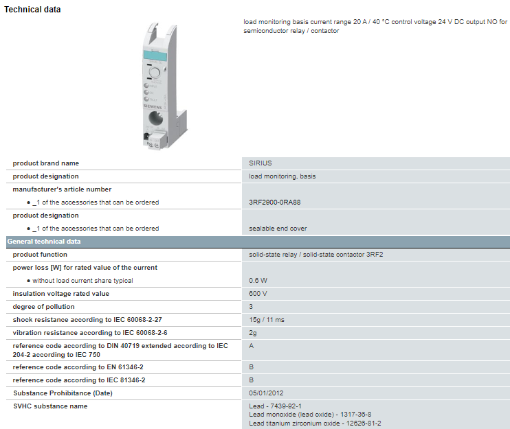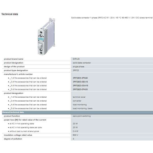 3RF2920-0FA08 Siemens 3RF 29 Mountable Accessories For Semiconductor Relay/Contactor