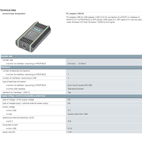 notebook to SIMATIC S7 via PROFIBUS or MPI contain USB cable 5 m, MPI