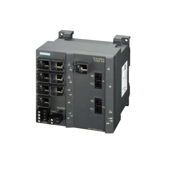 SCALANCE X308-2LD, managed plus IE switch, 2x 1000 Mbit/s SM SC, 1x 10/100/1000 Mbit/s, 7x 10/100 Mbit/s RJ45 ports, LED diagnostics, error signaling contact with select/set pushbutton, PROFINET IO device, network management, integrated redundancy manager, office features (RSTP, VLAN, IGMP,..) C-PLUG in scope of supply.